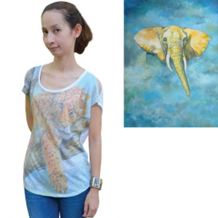 Mit der hochwertigen Animal-Print T Shirt Serie zieht das Designerlabel DoggyDolly jetzt auch die modebewusste Dame an. Auf dem leichten Sommershirt mit topmodischem weiten Halsausschnitt, ist ein wunderschönes Elefantenmotiv abgebildet. Rücken und Ärmel des locker den Körper umschmeichelnden Damen Shirts sind cremeweiss. Das perfekte T Shirt für trendige Tierliebhaberinnen!