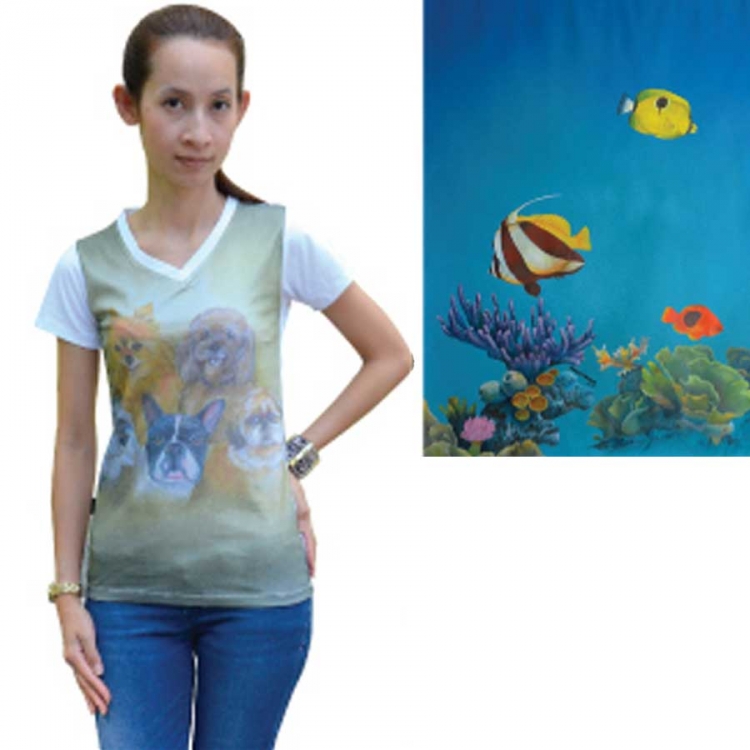 Mit der hochwertigen Animal-Print T Shirt Serie zieht das Designerlabel DoggyDolly jetzt auch die modebewusst Dame an. Auf dem leichten V-Neck Sommershirt für Damen ist ein kunstvolles Unterwassermotiv mit bunten Fischen abgebildet. Rücken und Armel des Damen Shirts sind cremeweiss. Das perfekte T Shirt für trendige Tierliebhaberinnen!