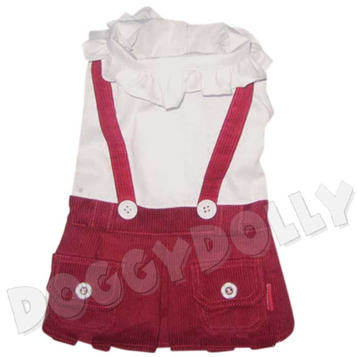 Süße rote Blusen-Rock-Kombination im Schulmädchen-Style von Doggydolly Hundemode. Die Hundebluse ist aus leichtem Baumwollstoff mit angesetztem Kragen, der Trägerrock aus einem weichem Feincordstoff gefertigt. Besonders hübsch sind die weißen Knöpfe und die die aufgesetzten Taschen für Leckerlies. Ein perfektes Outfit für den ersten Tag in der Hundeschule!