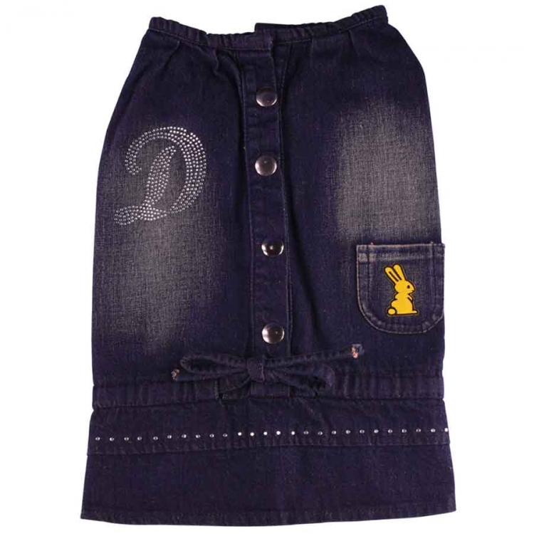 Dieses Hundekleid von Doggydolly Hundebekleidung ist genau das Richtige für alle Jeansliebhaber! Das Jeanskleid ist aus dunkelblauem stone-washed Denim. Der Jeansstoff von Doggydolly ist besonders angenehm zu tragen. Links auf dem Rücken befindet sich ein aufgesticktes D für Doggydolly. Mittig ist eine Knopfleiste zu sehen. Durch einen Kordelzug an der Taille lässt sich das Kleid perfekt der Figur des Hundes anpassen. Rechts befindet sich eine kleine Tasche mit gelbem Aufnäher in Häschen-Form.