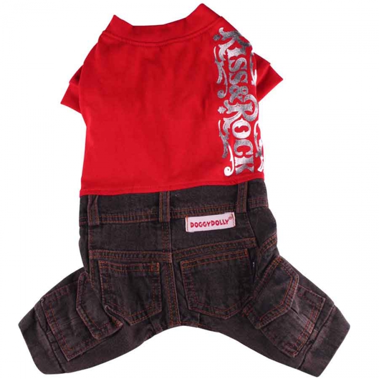 Doggydolly Hunde-Jeanskombi Kiss & Rock rot