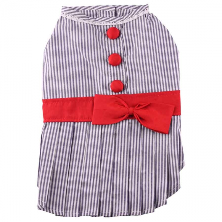Doggydolly Hundekleid blau-weiß, rote Knöpfe
