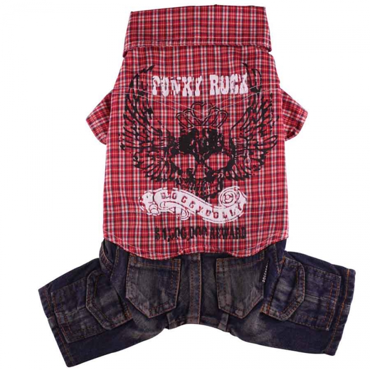 Diese rote Hundehemdkombi von Doggydolly Hundebekleidung ist perfekt als sommerliches Outfit oder auch für kühlere Tage. Die dunkle Jeanshose hat aufgesetzte Taschen, in denen Leckerlies verstaut werden können. Das karierten Hemd mit Kragen, Totenkopf Aufdruck mit Aufschrift Punky Rock ist ideal für den sportlichen Hund. Der Einteiler ist durch den Klettveschluss am Hemd besonders leicht anzuziehen. Diese Hundekombi ist auch in hellblau, dunkelblau oder braun verfügbar.