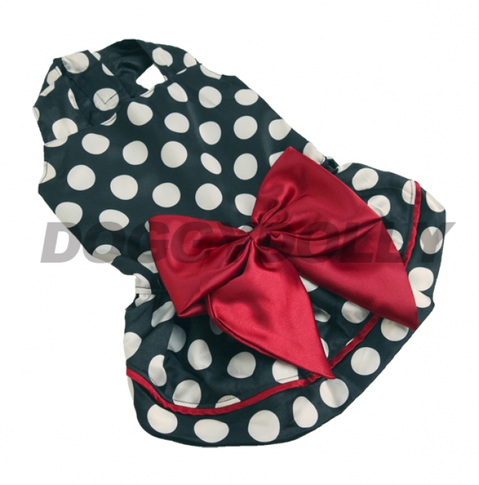 Dieses schwarze Kleid mit den weißen Punkten von Doggydolly Hundemode unterstreicht den jugendlichen, fröhlichen Charakter Ihres Hundes. Das weiß gepunktete Hundekleid hat in Taillenhöhe eine große, rote Schleife, die ihm den letzten Kick verpasst. Das ärmellose Abendkleid wird am Bauch ganz einfach mit einem Klettverschluss geschlossen. Dieses Modell ist auch in weiß und blau erhältlich.