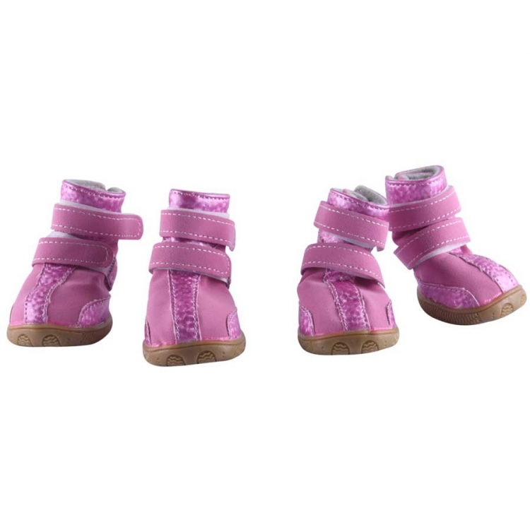 Die schicken Schuhe für Hunde von Doggydolly Hundemode sind perfekt für die sensiblen Pfoten Ihrer Hundedame. Die Hundeschuhe schützen die Pfoten im Winter vor Eis, Schnee und schädlichem Streusalz - im Sommer bieten sie Schutz vor dem heißen Asphalt. Die Zunge der Schuhe ist schimmernd rosa. Die beiden Klettverschlüsse ermöglichen eine gute Anpassung an die Pfötchen Ihres Hundes.