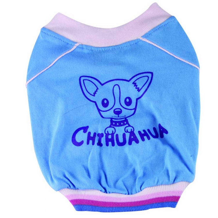 Ein süßer Hundepulli in blau von Doggydolly Hundemode. Die Bündchen des Hundepullis sind pink, rosa und blau gestreift und es hat einen süßen, dunkelblauen Chihuahua-Aufdruck. Maße: (Rückenlänge x Brustumfang) XS 13cm x 2cm S 17cm x 22cm M 2cm x 32cm