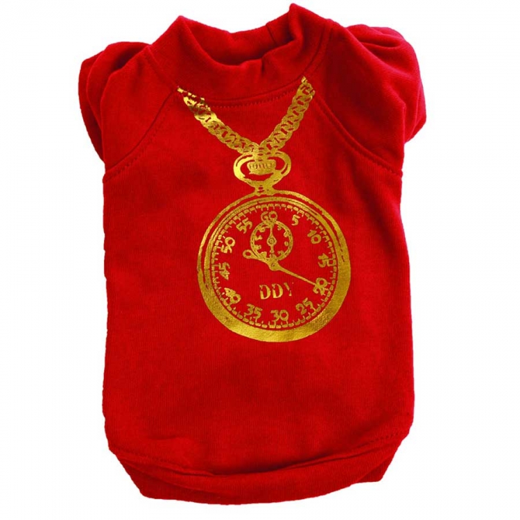Dieses T-Shirt ist das Richtige für schüchterne Hunde. Es ist nich zu auffällig und doch schick. Das Shirt ist rot und hat einen goldene Uhr als Aufdruck auf dem Rücken. Das Hundeshirt ist auch in den Farben rosa, gelb, grau und schwarz erhältlich.