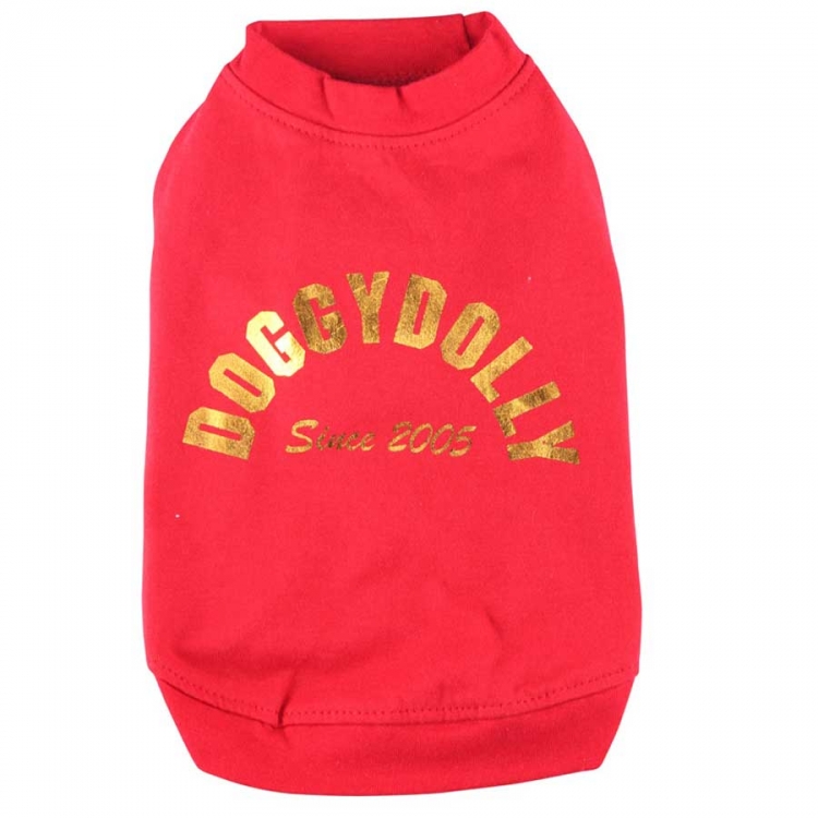 Modisches Hundeshirt in rot mit Aufdruck von Doggydolly. Dieses T-Shirt für Hunde besticht durch seinen großen, goldenen Schrifzug "Doggydolly since 2005" auf dem Rücken. Für echte Doggydolly Fans!