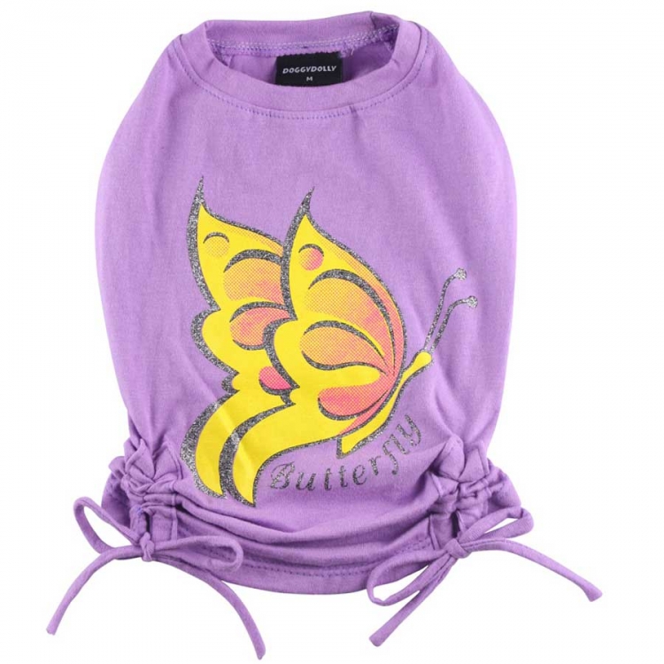 Dieses süße Hundeshirt vom Designerlabel Doggydolly ist etwas für naturliebende Hundemädchen. Es ist lila mit einem großen, gelben Schmetterling auf dem Rücken. Das Besondere an diesem Model ist die Möglichkeit es an den Seiten zu raffen. Das gibt dem Shirt für Hunde auch eine gute Passform.