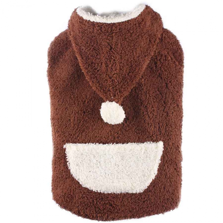 Cute brown plush hoodie by Doggydolly dog fashion. This hooded plush pullover is perfect for a walk on chilly days. It has a white pompon at the end and a pocket on its back. This sweater is also available in pink.
