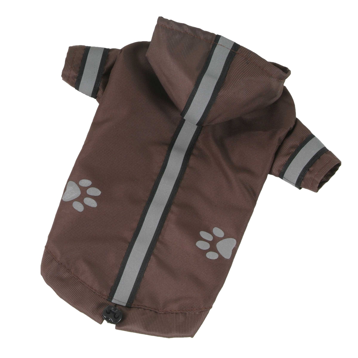 Cute rain jacket for small dogs in brown, with hood and reflectors on sleeves and back. The dog raincoat is closed under the belly with Velcro closures, an adjustable drawstring is incorporated to regulate the fit. Nylon, delicate wash 30 °. Size XS chest 31-33cm, back 18-20cm