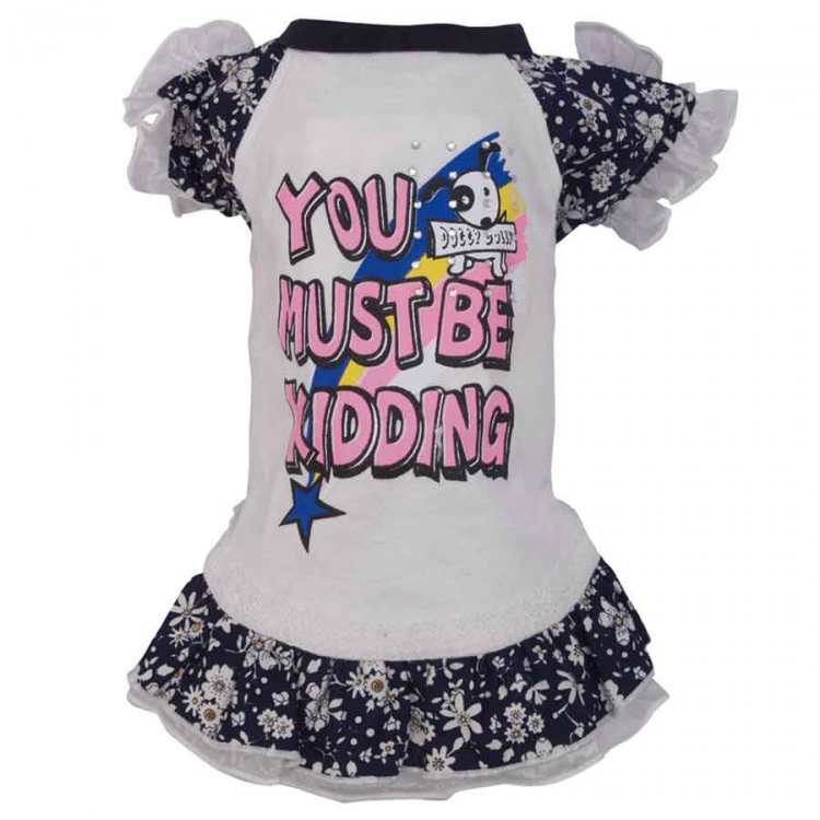 Détails: -les manches et bas de la robe sont bleus avec des ornementsde dentelle -inscription rose "You must be kidding"