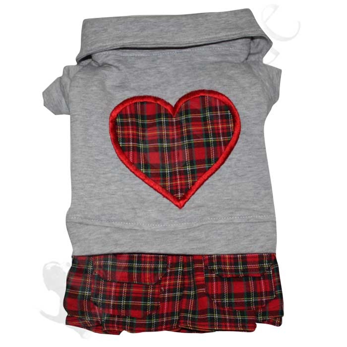 La robe pour chienne grise par Doggydolly mode canine avec coeur quadrillé et jupe à carreaux est parfaite pour les jour frais. La robe sportive a deux poches sur le dos et un col polo. Ce modèle existe aussi en noir.
