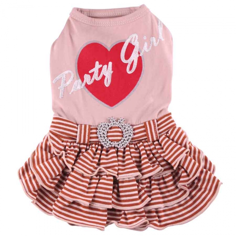 ...l'habit parfait pour faire la fête. Détails: rayures beiges et brunes boucle argentée inscription "Party girl" coeur rouge Mesures: Longueur de dos Tour de poitrine XS 26cm 30cm S 28cm 32cm M 31cm 36cm L 35cm 40cm XL 39cm 46cm XXL 42cm 48cm"