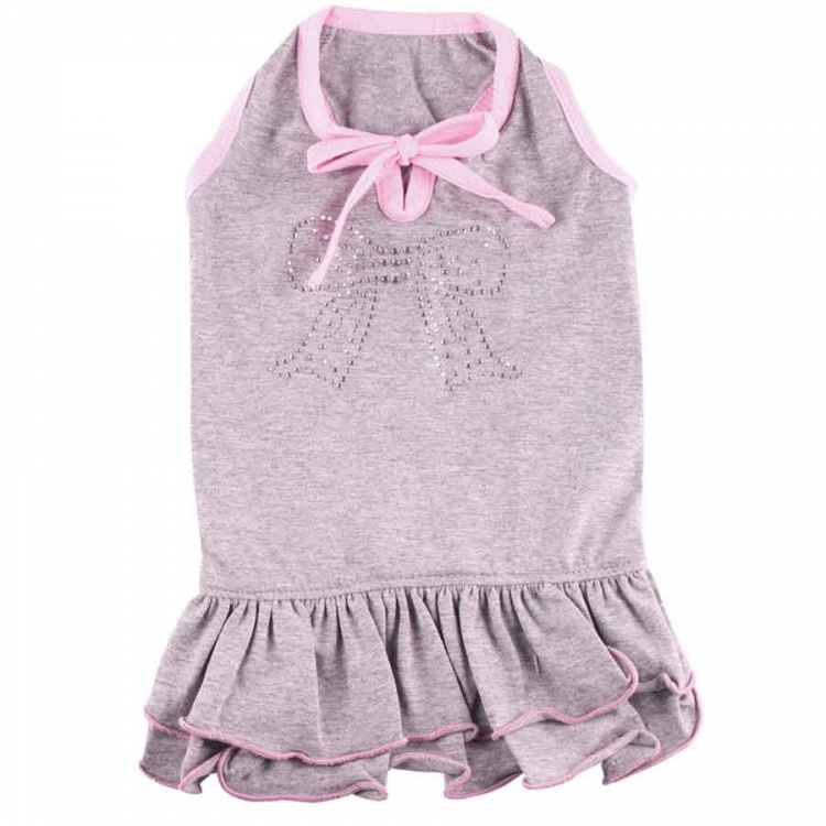 Cette robe grise à double couche avec des bordures roses aux extrémités, son décolté moderne et le noeud aux pierres argentées scintillantes a tout pour attirer les regards. Mesures: (Longueur du dos x Tour de poitrine) XS 22cm x 28cm S 26cm x 30cm M 29cm x 34cm L 34cm x 40cm XL 37cm x 42cm XXL 40cm x 44cm