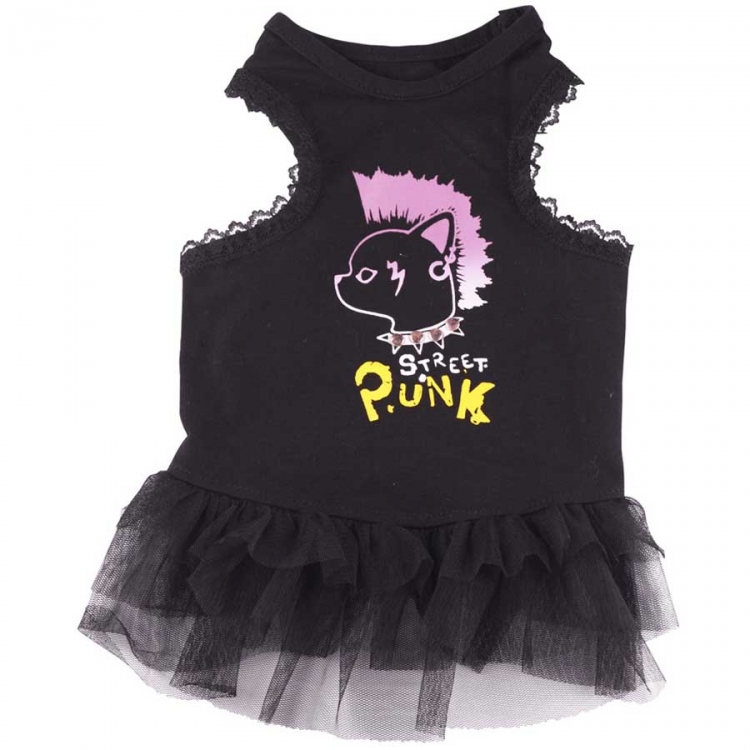 Robe sans manches avec dentelle et écriture "Street punk" avec une image punk."