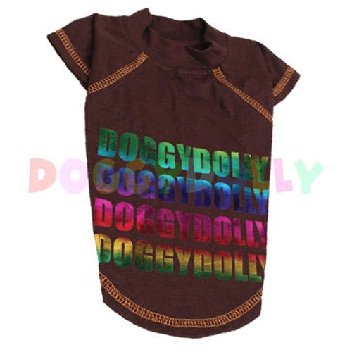 Ce T-shirt en tissu confortable est d'un style qui ne passe pas inaperçu. En coloris brun les inscriptions « doggydolly » sont imprimés en couleur de l'arc en ciel métallique. La tenue idéale pour être repéré. Cet article est disponible en vert, blanc, rouge et noir.