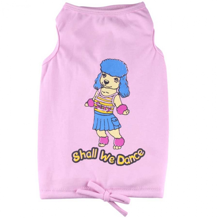 T-shirt sans manche avec impression d'un chien dansent avec en dessous les inscriptions « shall we Dance ». Le tissu est en coloris rose mais existe également en coloris gris.